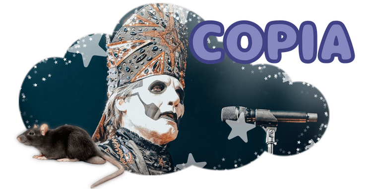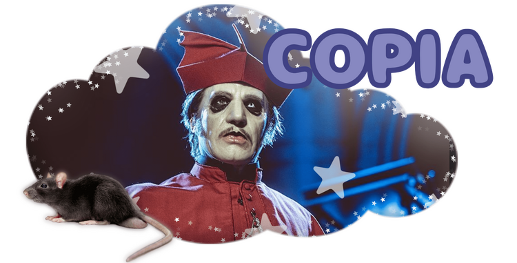 Copia knows not who his parents are and, thus, is unaware of the true nature of his status. He was born to the leader of the Satanic church, Papa Emeritus Nihil; and his wife (now ex-wife) Sister Imperator.However, Imperator never told a soul that she became pregnant, as on the night she was to announce her pregnancy to her husband, she witnessed him with another woman. She left that particular branch of the church and gave birth to (what she believed to be) the Antichrist in secret. Copia isn't even aware that she is his mother, but she still guides him as his "supervisor."Raised in the church, Copia was very devout. He spent most of his time in the library, researching under the watchful eyes of the church's higher ups. Throughout his early years, and even the rest of his life, he would be picked on for his appearance, his interests, and his unusual tendencies.As he grew older, Copia would be transferred to work under the watch of Sister Imperator, eventually being promoted up to the position of Cardinal. Pleased with the progress he had made, Imperator made preperations to take Copia overseas and return to the Ministry in order to prepare him for his role as Papa.Upon arriving, Copia was met with the news that Papa Emeritus III was forcefully removed from his role as the frontman for Ghost - Copia was made to take his place, wherein he found he enjoyed the endless praise of Ghost's devoted fandom.